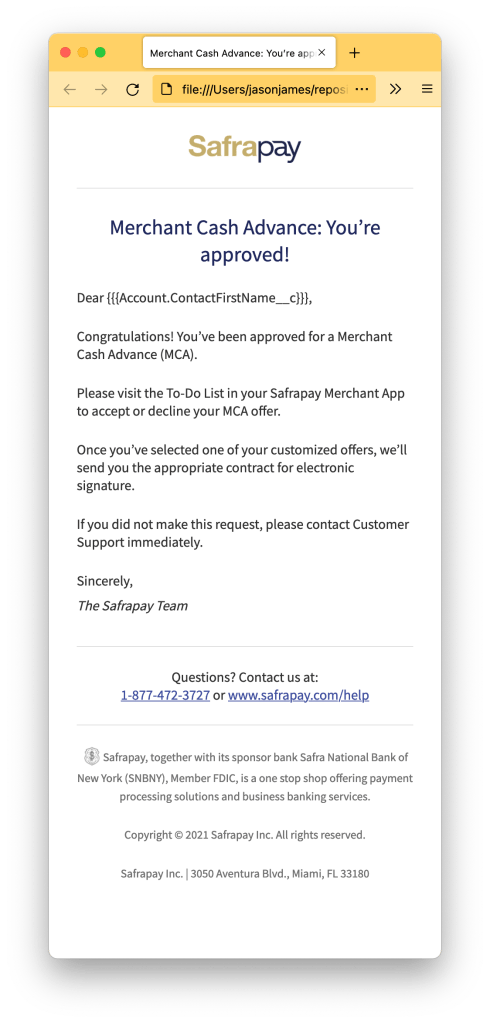 Github: A Customer Communication E-mail Example (Safrapay)